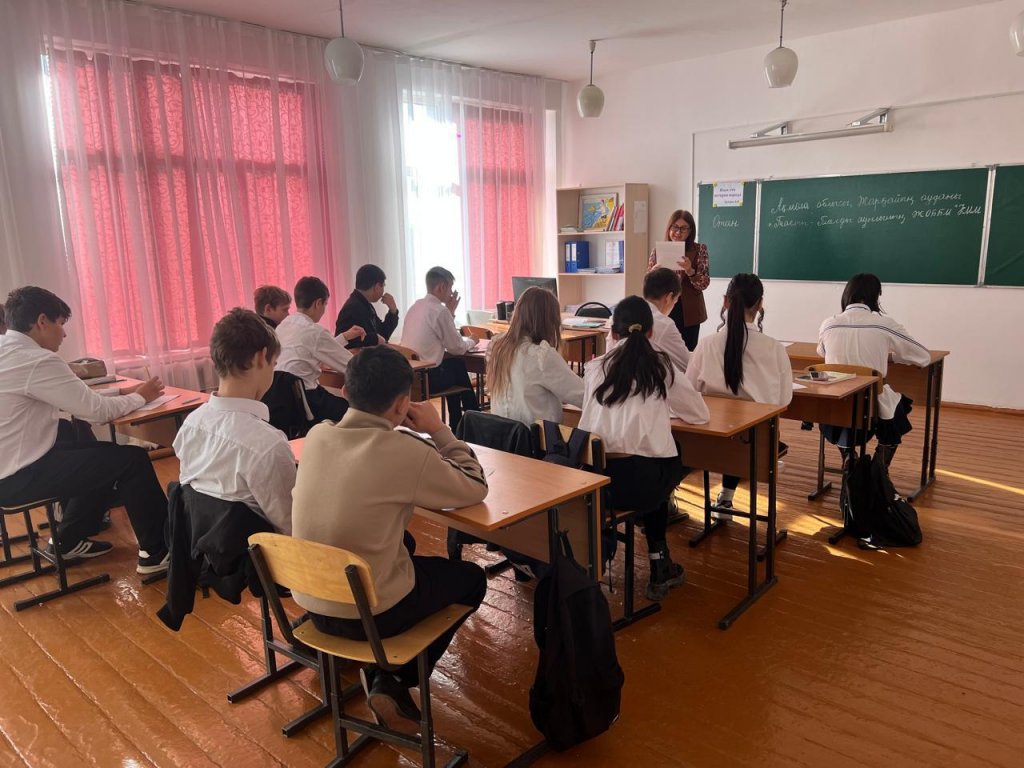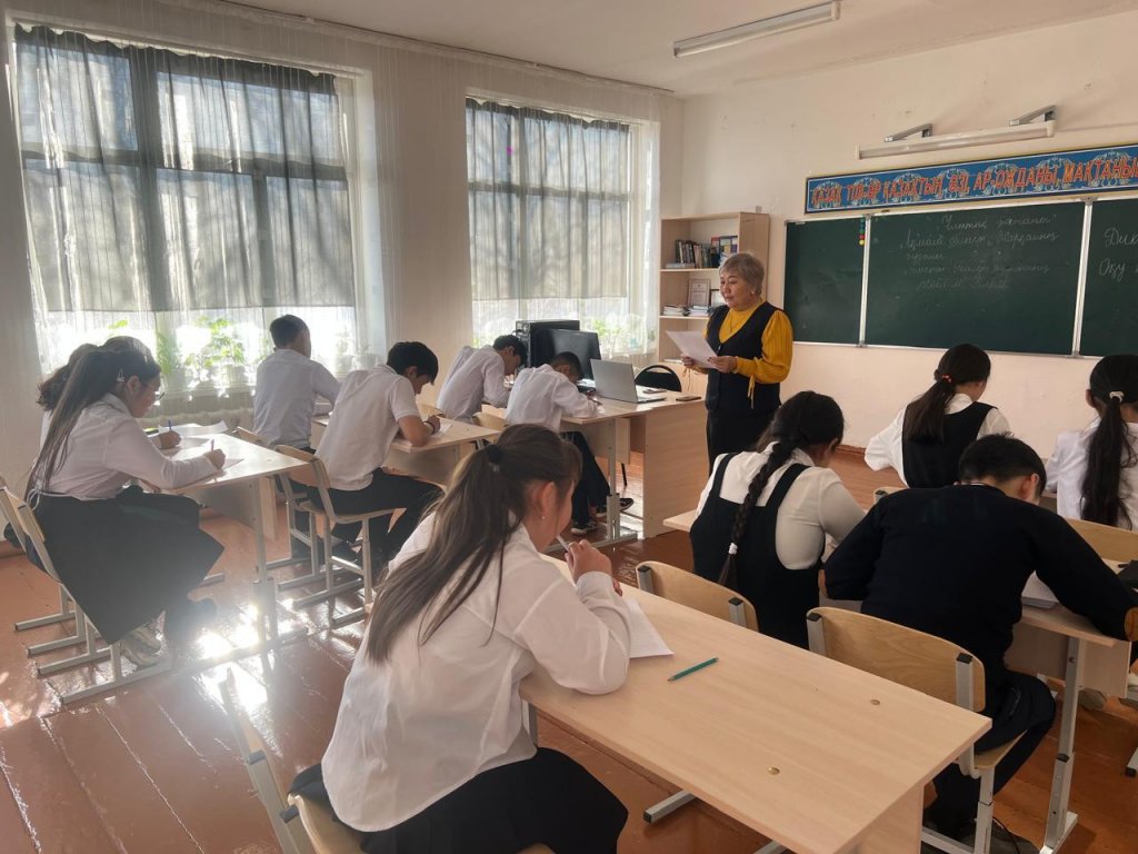 Бұл жоба – азаматтардың жазу сауаттылығын арттыруға, мемлекеттік тілдің мәртебесін көтеруге бағытталған жалпы республикалық мәдени-ағартушылық бастама болып табылады. Қатысушылар саны: 8 “Б” сыныбы – 5 оқушы, 9 «А , Б” сыныбы – 13 оқушы, 10 «А, Б” сыныбы – 5 оқушы, 11 «Б”сыныбы – 2 оқушы. Қызметкерлер (жазбаша түрде) – 5 педагог қатысты. Барлығы: 30 қатысушы