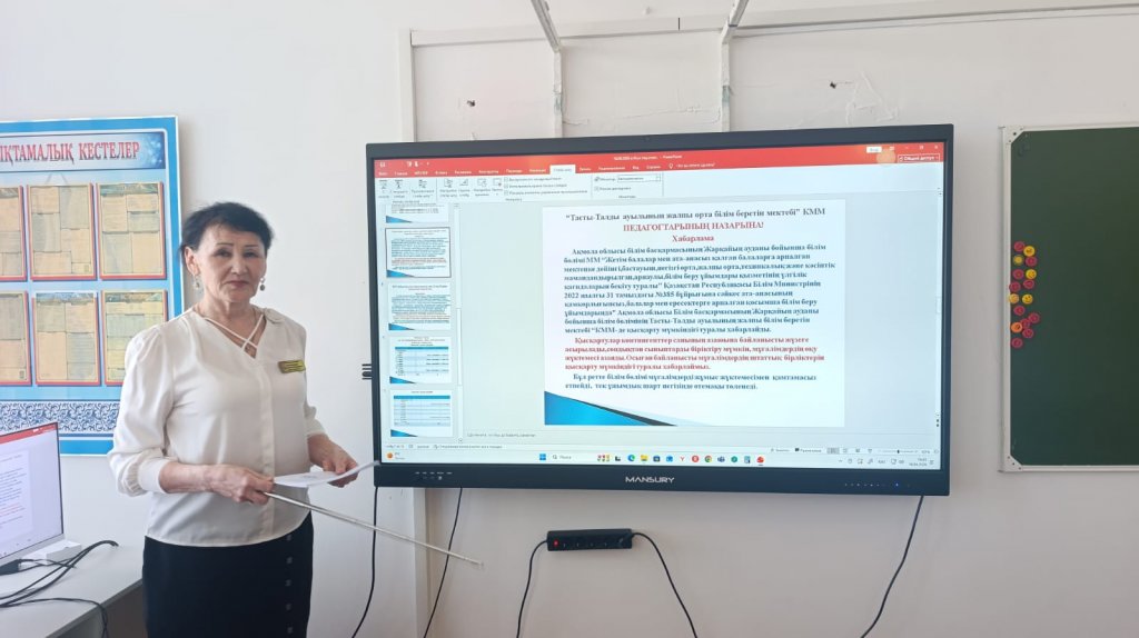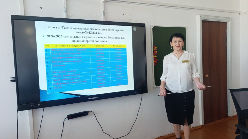 Бүгінгі педагогикалық кеңесте мектеп директоры Мукамажитова К.З. «Білім беру үдерісін тиімді ұйымдастыру және 2026–2027 оқу жылына сапалы дайындық мәселелері» туралы айтты. Педагогикалық кеңесте білім беру үдерісін тиімді ұйымдастыру және 2026–2027 оқу жылына сапалы дайындық мәселелері жан-жақты қарастырылды. Кеңес барысында оқу жоспарларын жетілдіру, білім сапасын арттыру, әдістемелік қызметті жүйелеу және педагогтердің кәсіби құзыреттілігін дамыту бағыттары талқыланды. Сонымен қатар кадрлық қамтамасыз ету мәселесіне ерекше назар аударылып, пән мұғалімдерінің жетіспеушілігі мен бос жұмыс орындарының болуы өзекті мәселе ретінде белгіленді. Оқушылар санының азаюына байланысты сыныптарды біріктіру қажеттілігі қарастырылып, білім алушылардың сапалы білім алуына кері әсерін тигізбеу жолдары ұсынылды. Кеңес қорытындысы бойынша аталған мәселелерді шешу бағытында нақты ұсыныстар қабылданып, жауапты тұлғаларға тиісті тапсырмалар жүктелді.